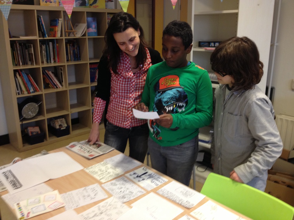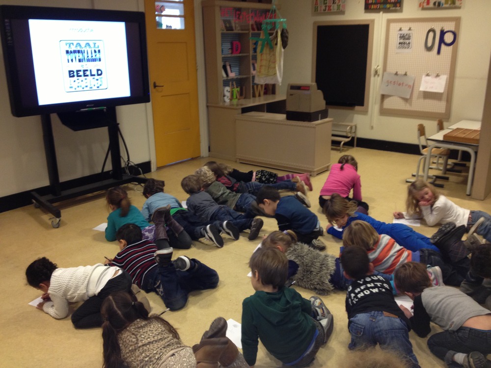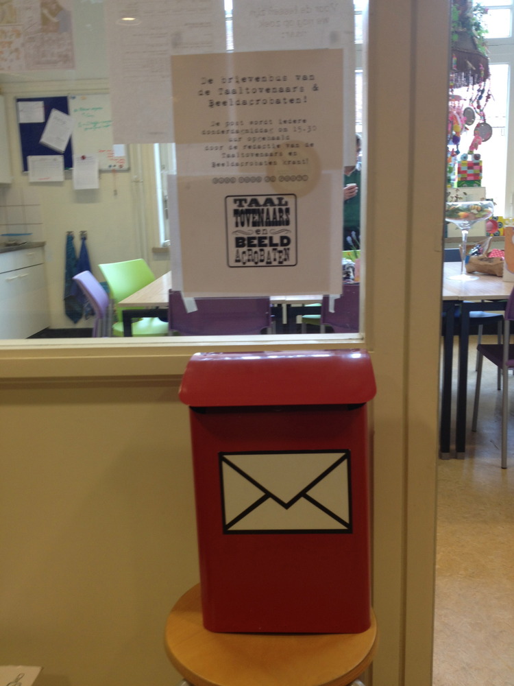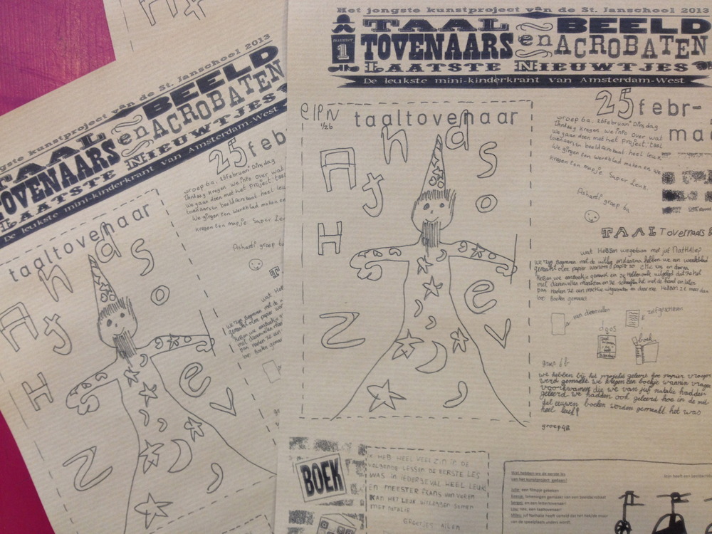 Na afloop van de les kreeg iedere klas ook een envelop overhandigd, met daarin een schrijf-/tekenopdracht voor de Taaltovenaars en Beeldacrobatenkrant die elke vrijdagmiddag uitkomt!