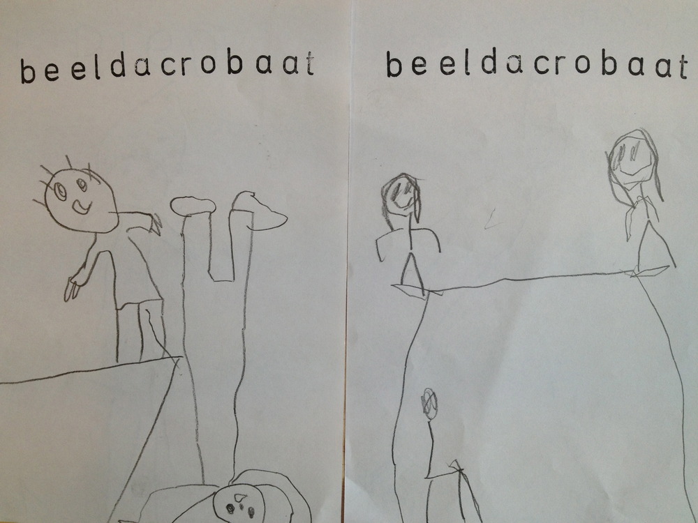 De kleutergroepen hadden de eer vandaag om ons gloednieuwe kunstproject te openen. Wat is nu eigenlijk een taaltovenaar en wat doet een beeldacrobaat precies? Al pratende kwamen we daar samen achter en hebben we meteen heel veel taaltovenaars en beeldacrobaten getekend.