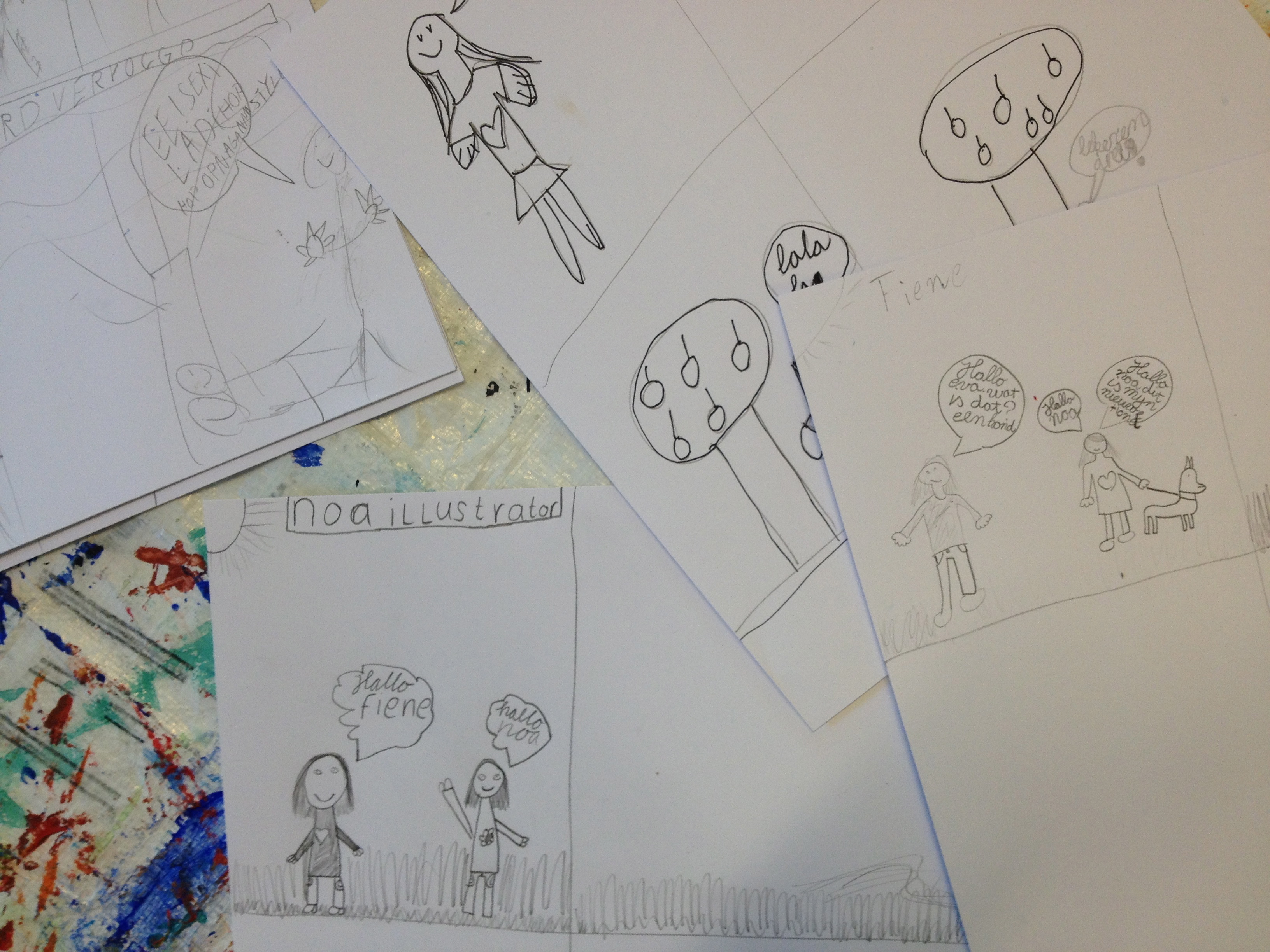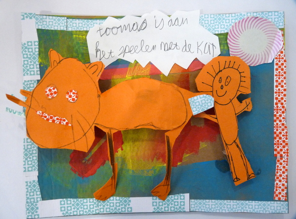 Groep 4A werkte vandaag verder aan hun pop-up boek. Er werd hard gewerkt..zelfs zo hard dat de juf de tijd helemaal vergat! Eén groepje kwam daardoor helaas niet aan de beurt. Geen zorgen…halen we snel in! De twee groepjes die wel op zolder werkten schilderen hun landschapjes af en begonnen aan een mini-stripverhaal dat we de volgende keer zullen verwerken in het boek. Maurits maakte een hele leuke over een kikker! Lees zelf maar….