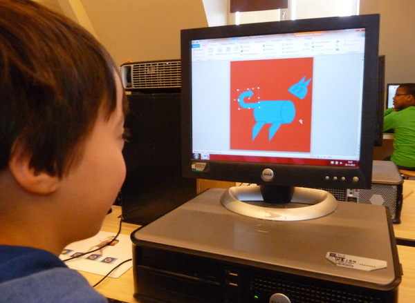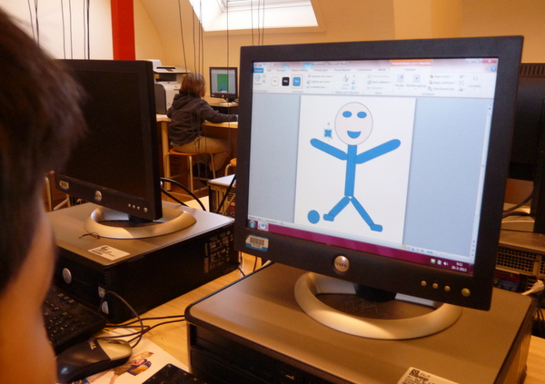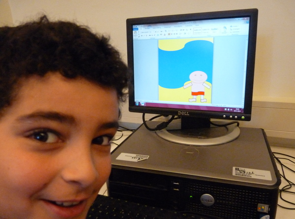 Vorige week werd er door 6b nog ambachtelijk gewerkt aan het ontwerpen van een poster. Papier knippen en scheuren, goed neerleggen en plakken maar. Vandaag zijn de kinderen, met de kennis die ze al hebben opgedaan, achter de computer gekropen om een digitale poster te ontwerpen. Na een korte uitleg van meester Frans gingen ze aan de slag.