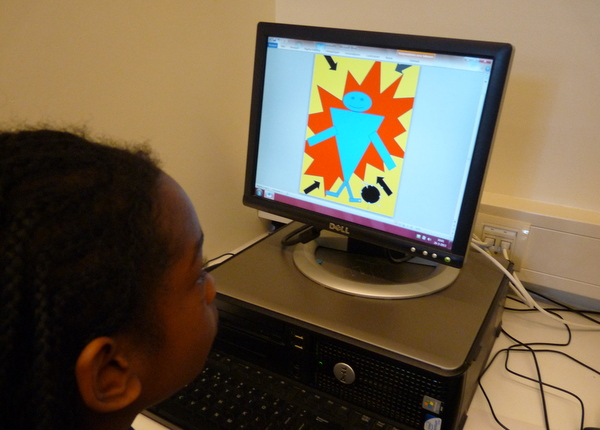 Het is niet te geloven hoe snel ze het ontwerpen met de computer hebben opgepikt. Ook nu werd er geknipt, geplakt, geschoven, vergroot en verkleind en uiteindelijk alles met kleur gevuld. Over ambachtelijk gesproken! De “muizen” in het computerlokaal hebben overuren gemaakt. En.. dat is ook wel te zien aan het resultaat. Goed gedaan 6b!