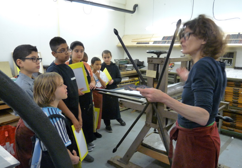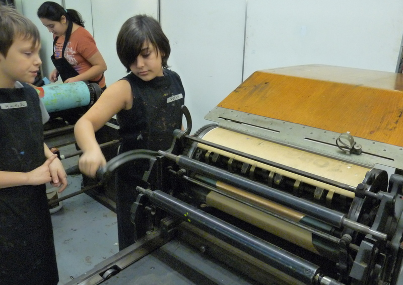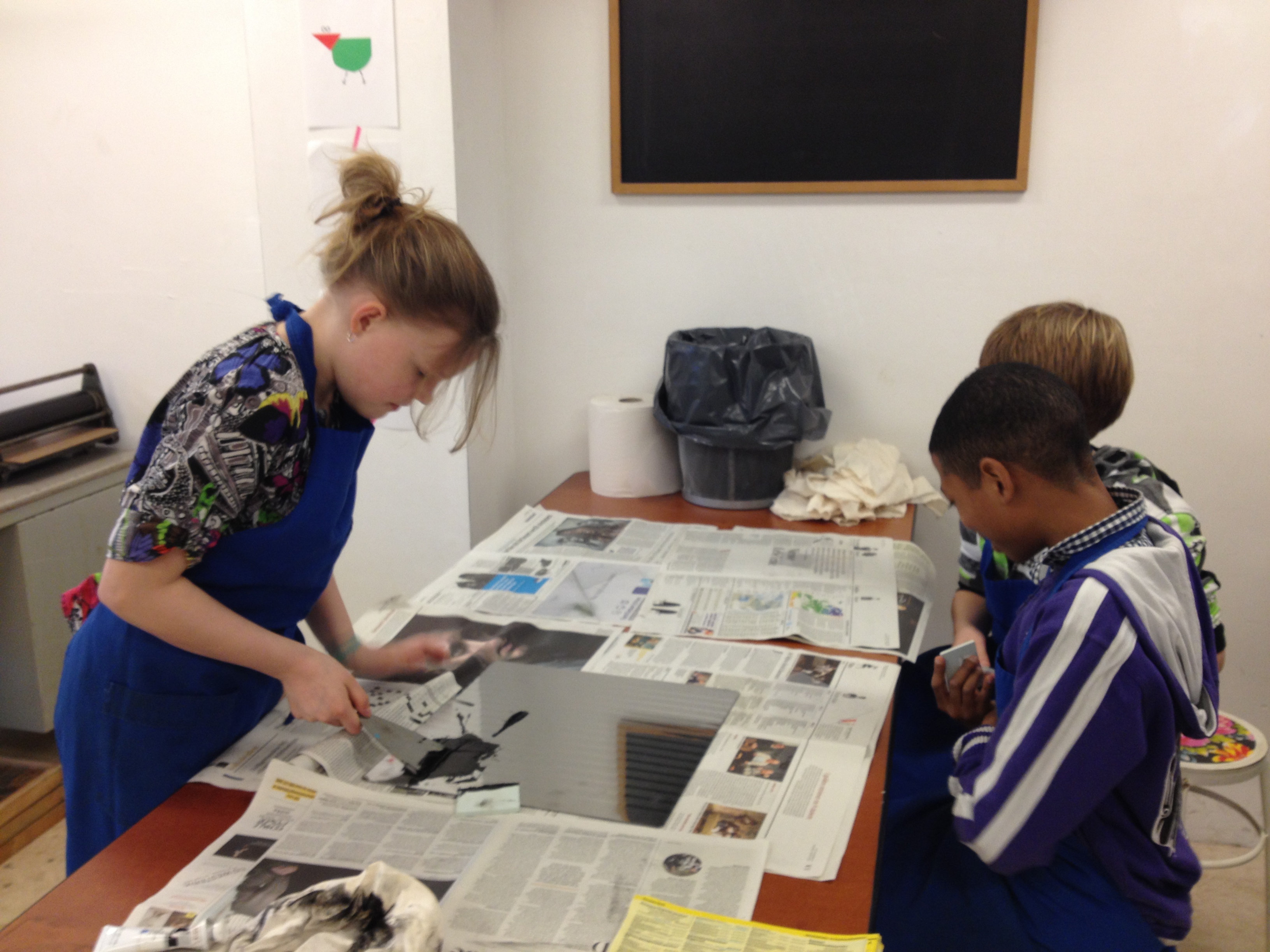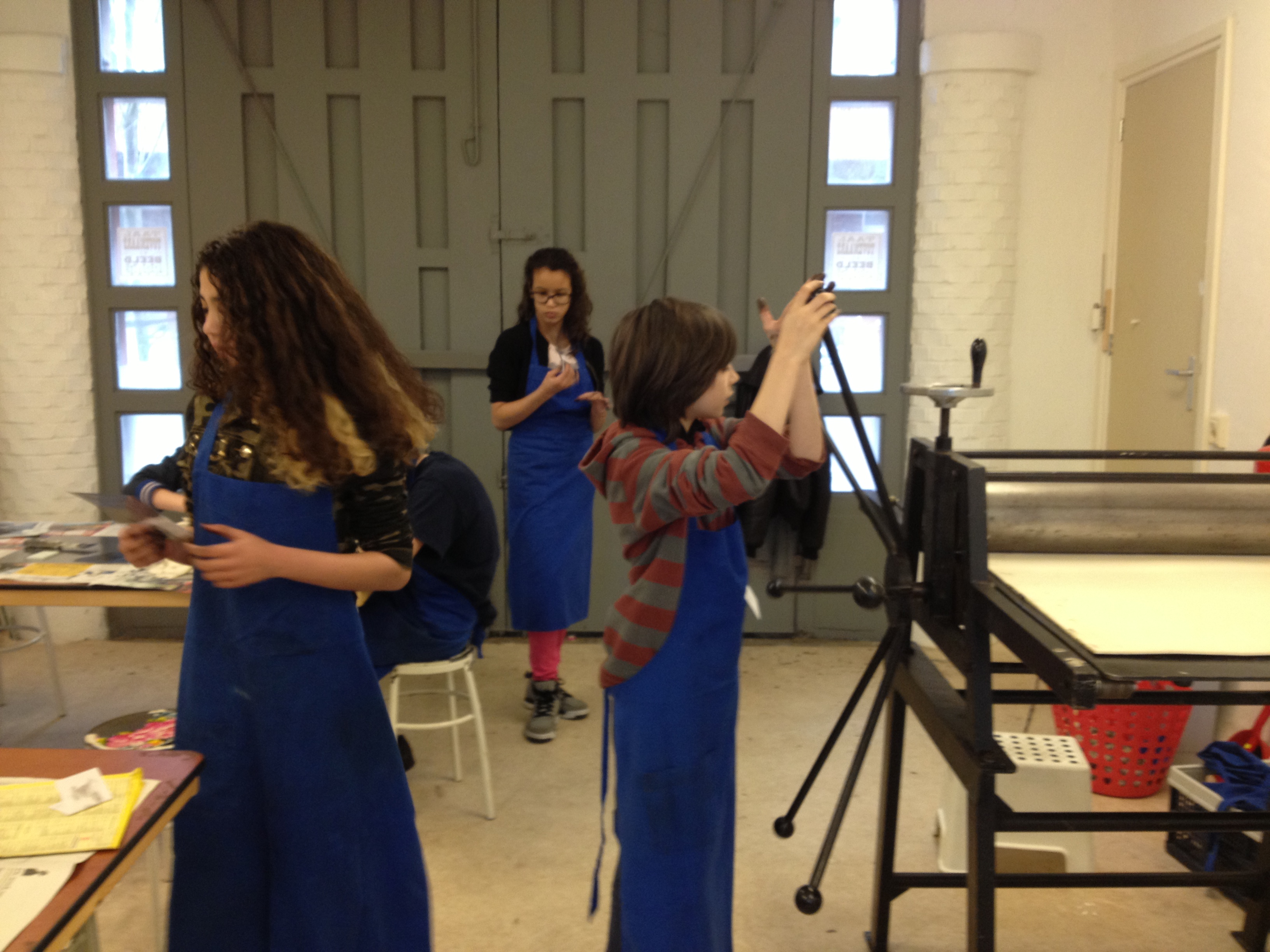 De helft van groep 8 toog vandaag naar ons atelier in de Van Kinsbergenstraat. Wat was het leuk vanmiddag om de eerste proefdrukjes te maken van onze kleine “droge naald” etsjes. Joost, de broer van juf Nathalie, kwam ons helpen bij het drukken. Bedankt Joost! Volgende week gaat de andere helft van de klas en daarna volgen er nog 2 sessies voor het drukken van het grote eindwerk! Dat zal prachtig worden ,want na vandaag hebben ze de smaak te pakken!