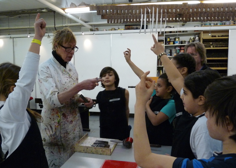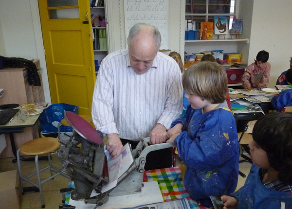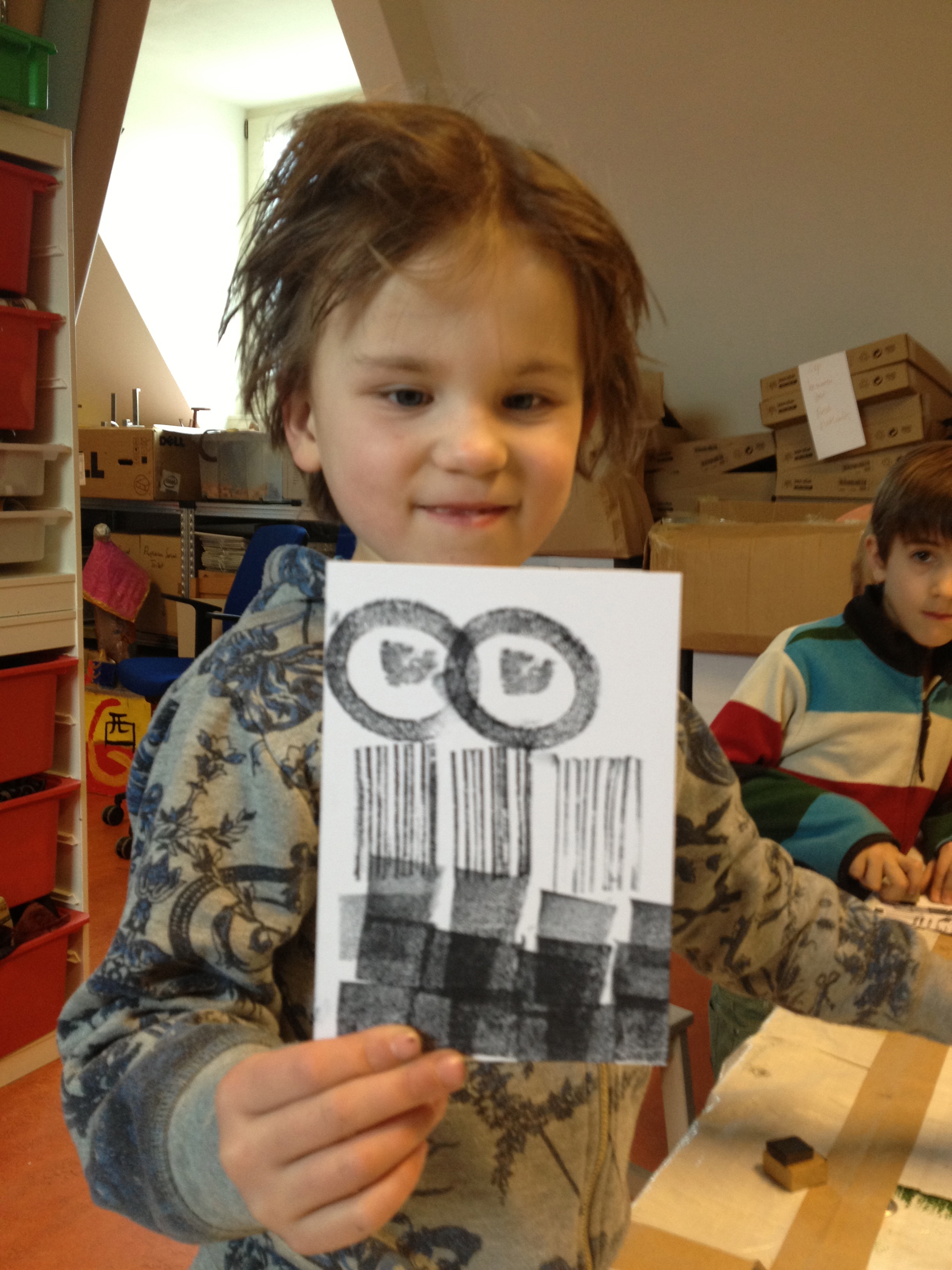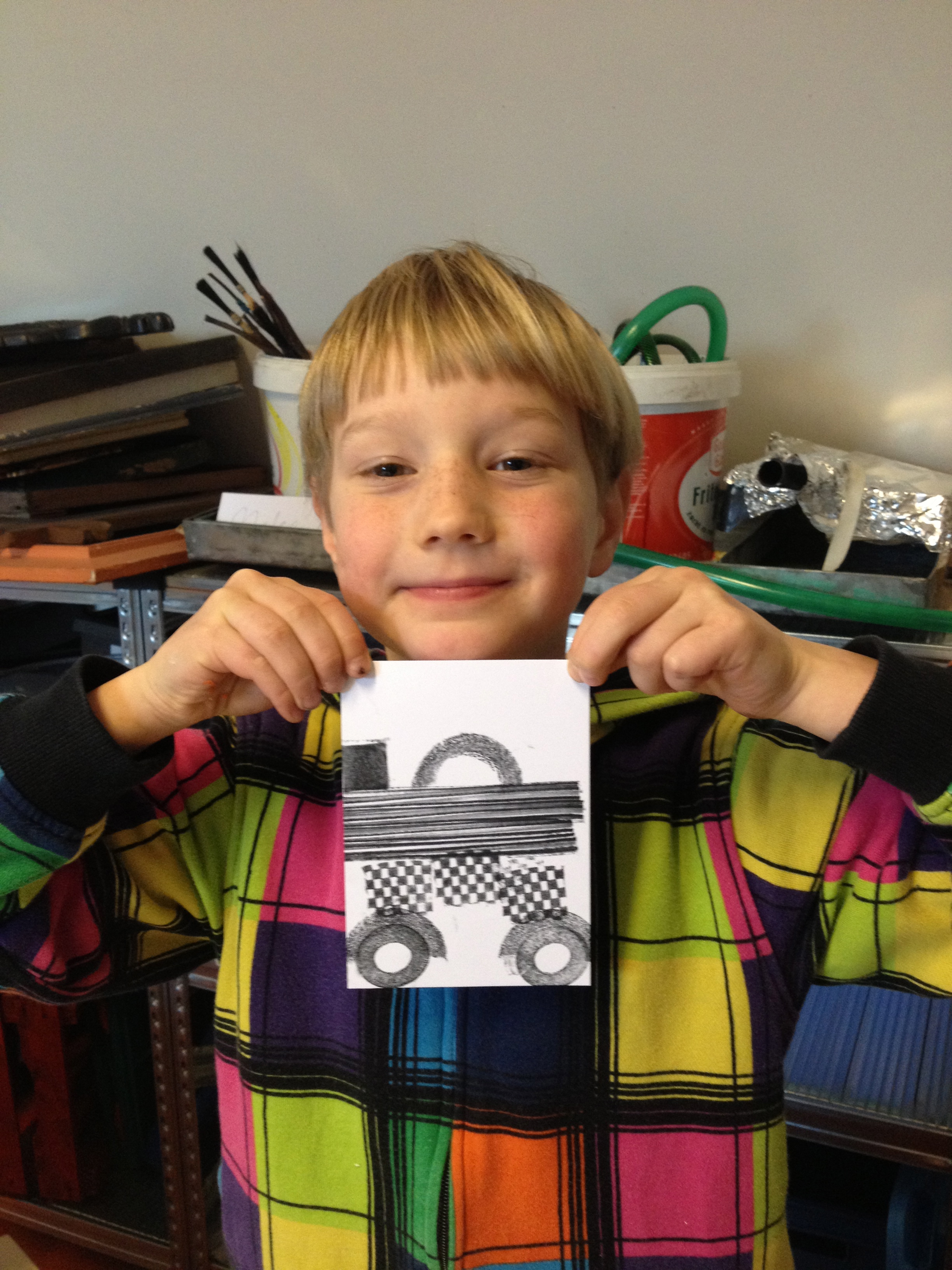 De helft van groep 8 toog vandaag naar ons atelier in de Van Kinsbergenstraat. Wat was het leuk vanmiddag om de eerste proefdrukjes te maken van onze kleine “droge naald” etsjes. Joost, de broer van juf Nathalie, kwam ons helpen bij het drukken. Bedankt Joost! Volgende week gaat de andere helft van de klas en daarna volgen er nog 2 sessies voor het drukken van het grote eindwerk! Dat zal prachtig worden ,want na vandaag hebben ze de smaak te pakken!