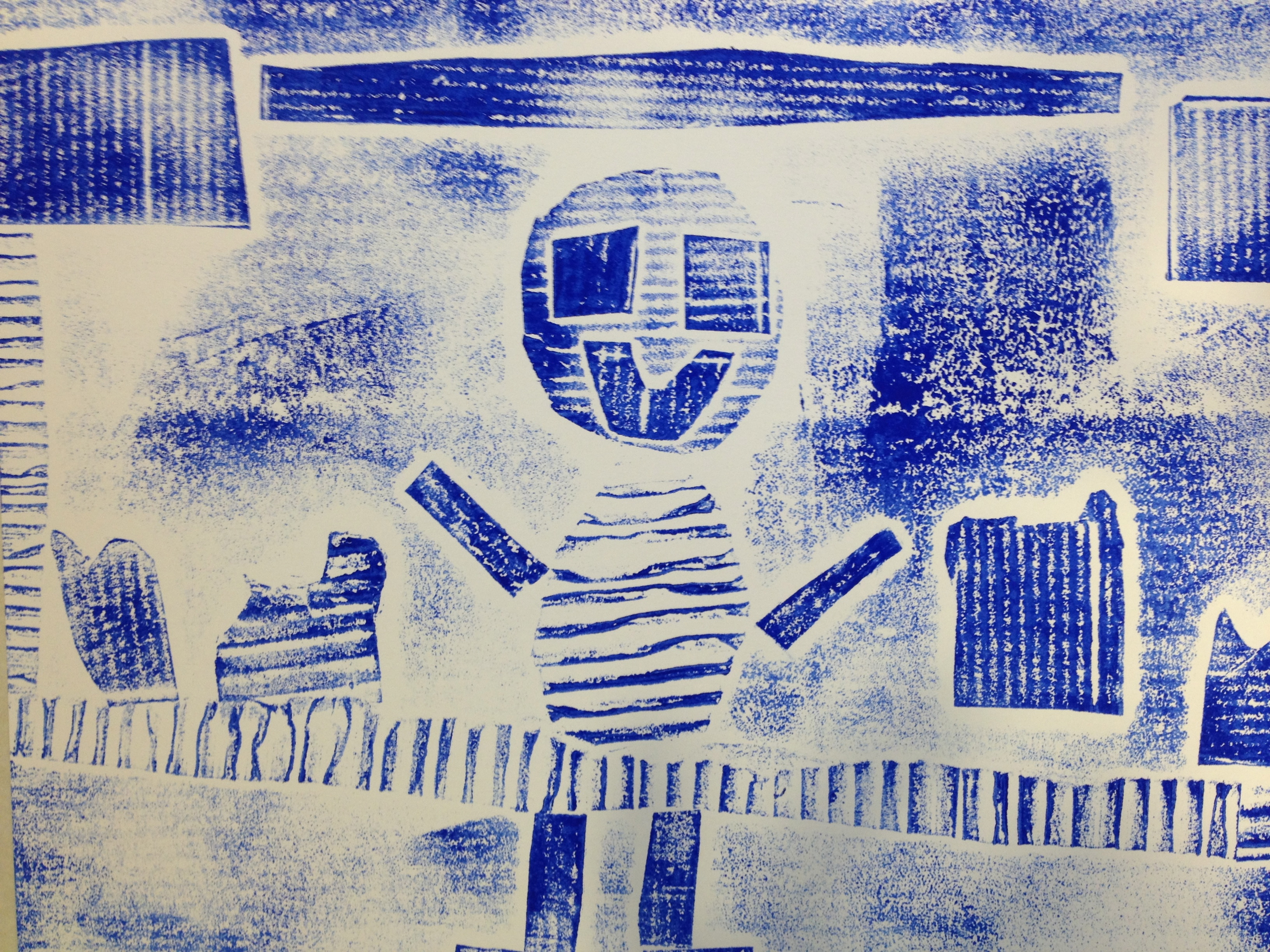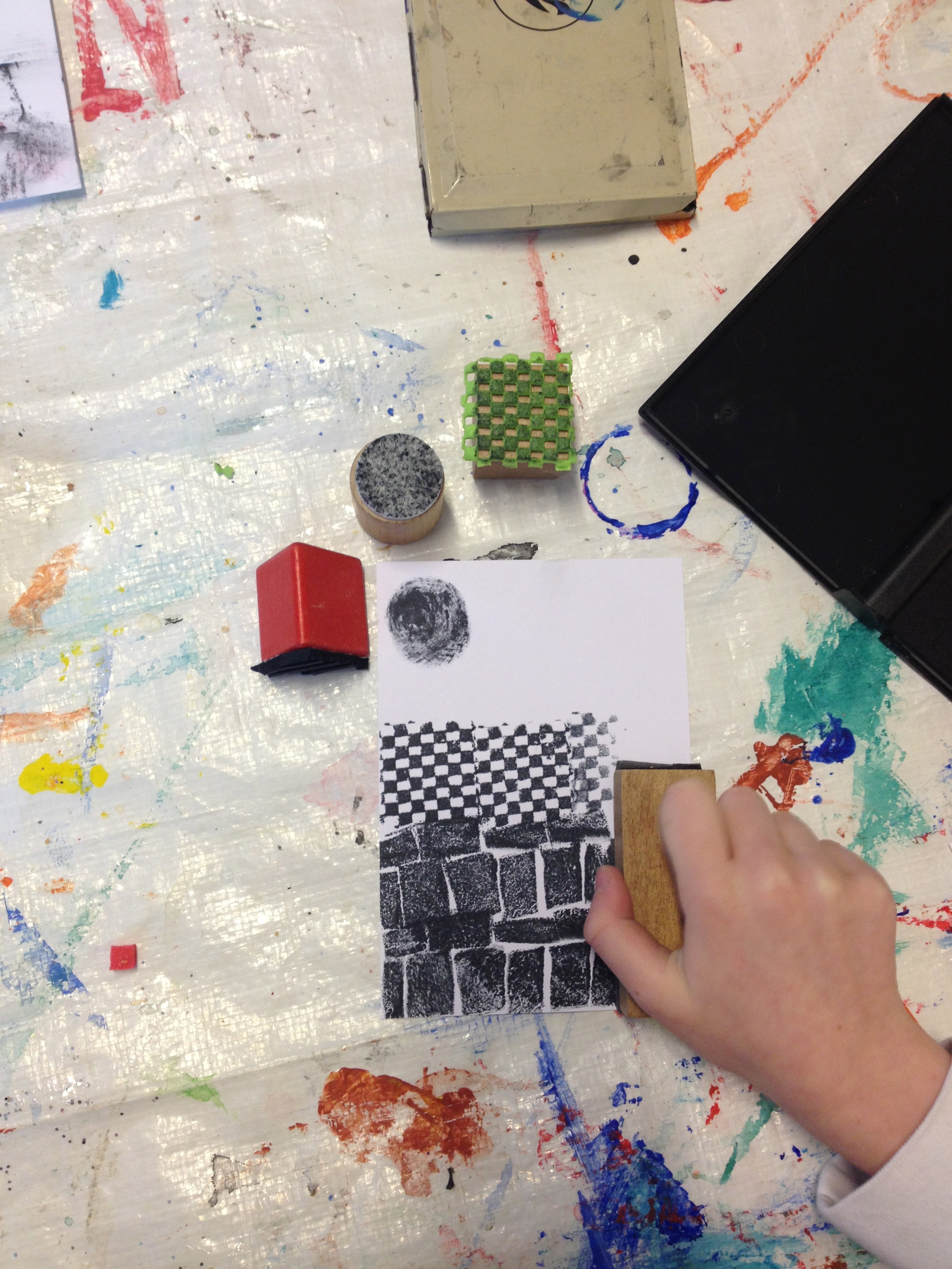 Vorige week maakte 3B al een eigen setje stempels voor hun stadsgeluidenposter. Vandaag mochten ze er nog één maken en wel een super grote! Natuurlijk leuk als er straks ook mensen in hun straat gestempeld kunnen worden. Als afsluiting mocht iedereen een stempelproefje maken van zijn eigen stempels. Al kleine kunstwerkjes…niet waar?