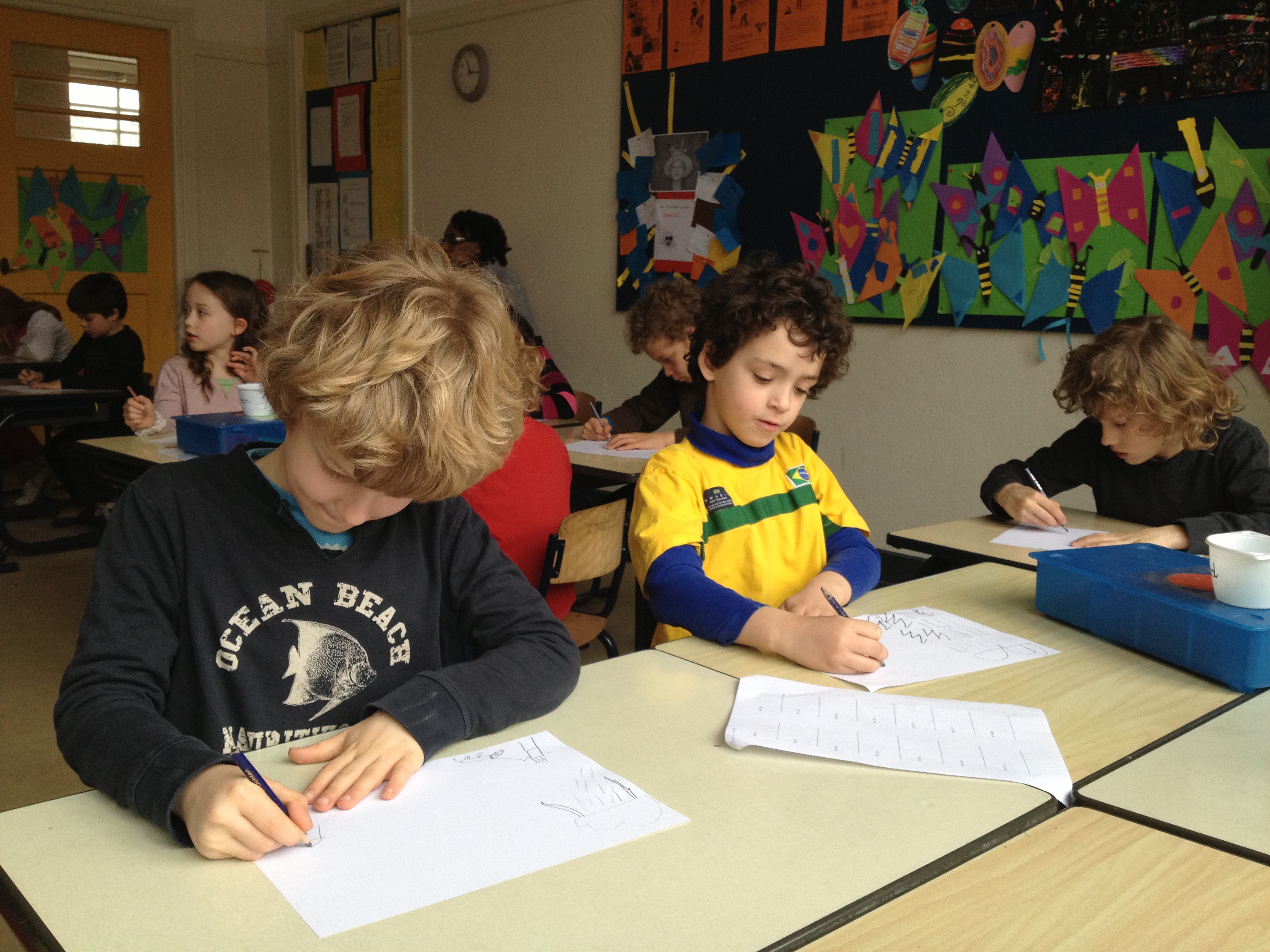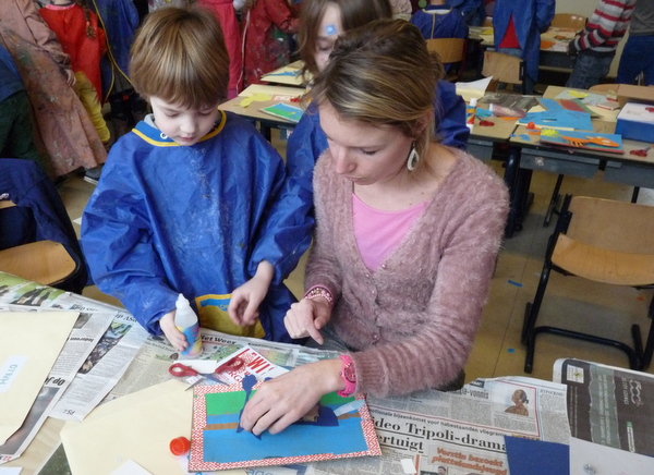 Vanmorgen was Claudi weer bij ons in 4b. Nu begon het echte werk pas goed. Ook meester Alex was meegekomen. Een echte vakman, dat zie je aan alles. We zijn nu een flink eind op weg naar echte Kesseltjes. O Claudi, als dat maar geen concurrenten voor je worden. Er zitten al prachtige werkjes bij. Volgende week de finishing touch….
