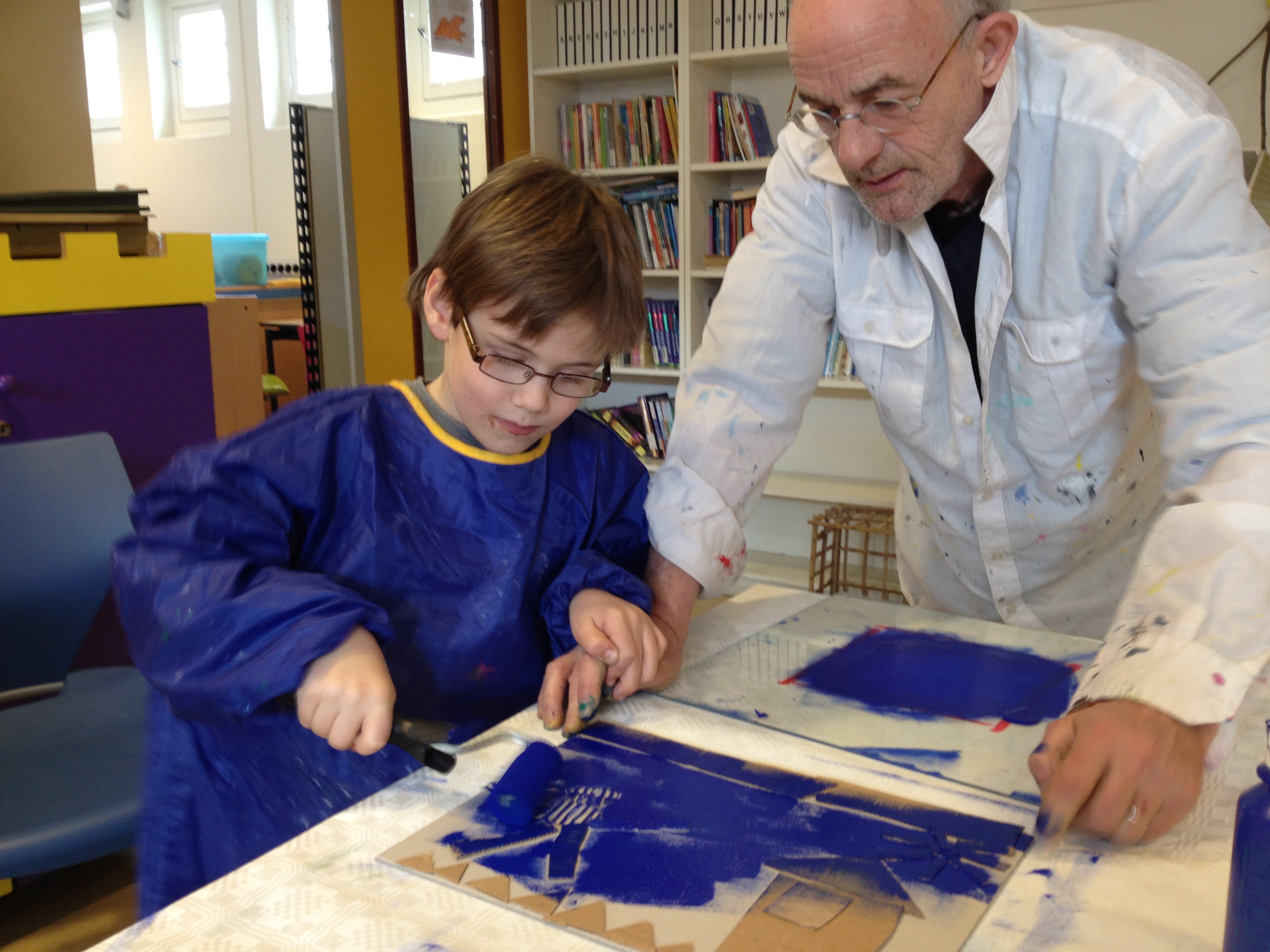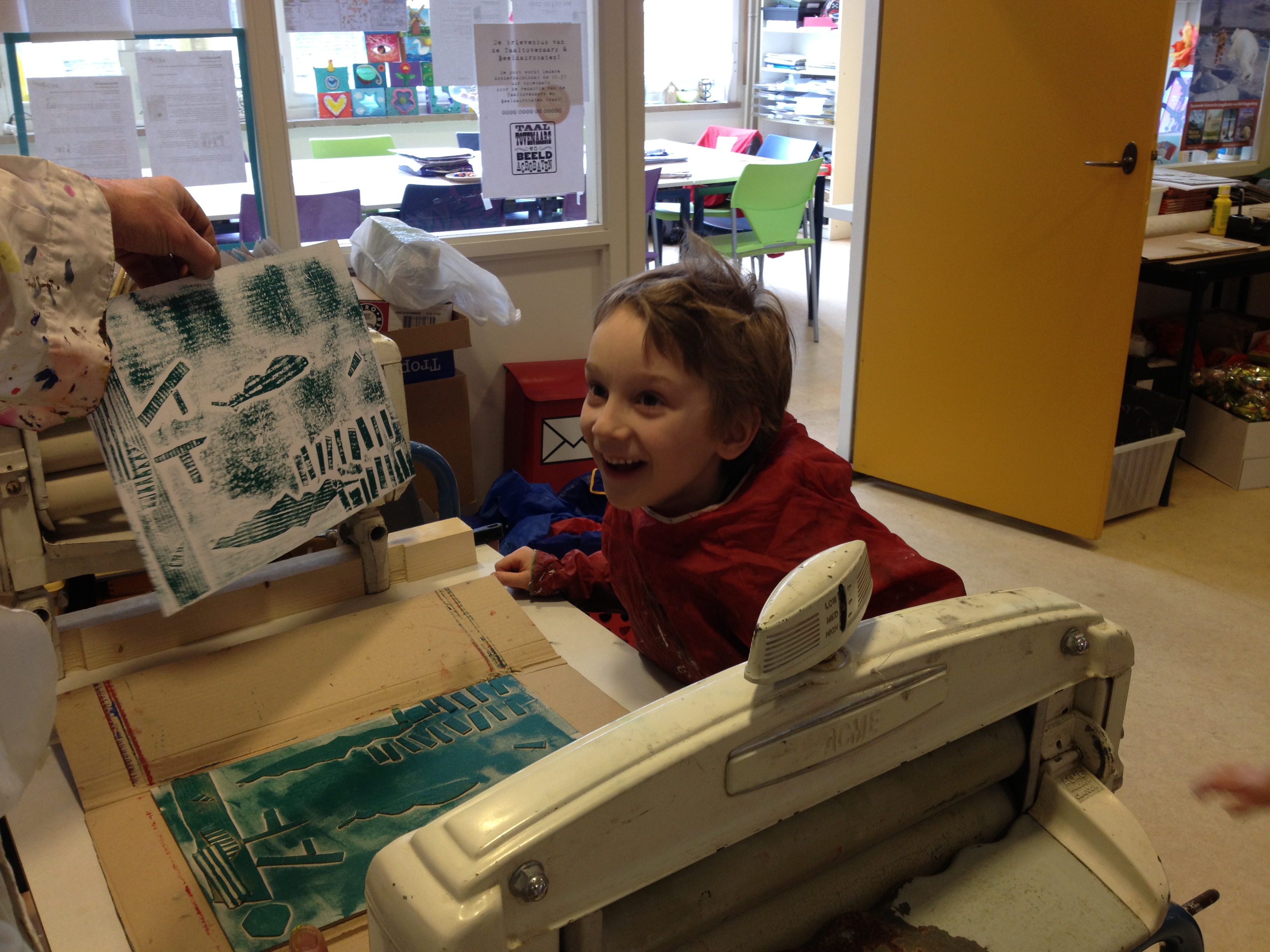 Eén en al verwondering in het drukwerklab op school vanochtend bij de klas van juf Joyce! Wat een coole klus om je eigen kartonnen werkje in te mogen rollen met blockprint om het vervolgens af te mogen drukken met de wringer! Rode hoofden van de inspanning, wat toverspreuken en dan heb je ook wat. Kijk zelf maar!