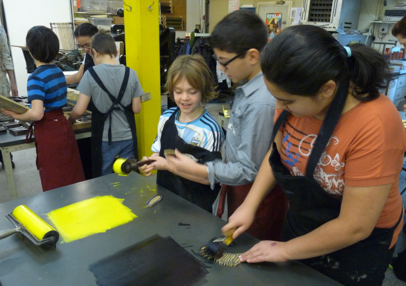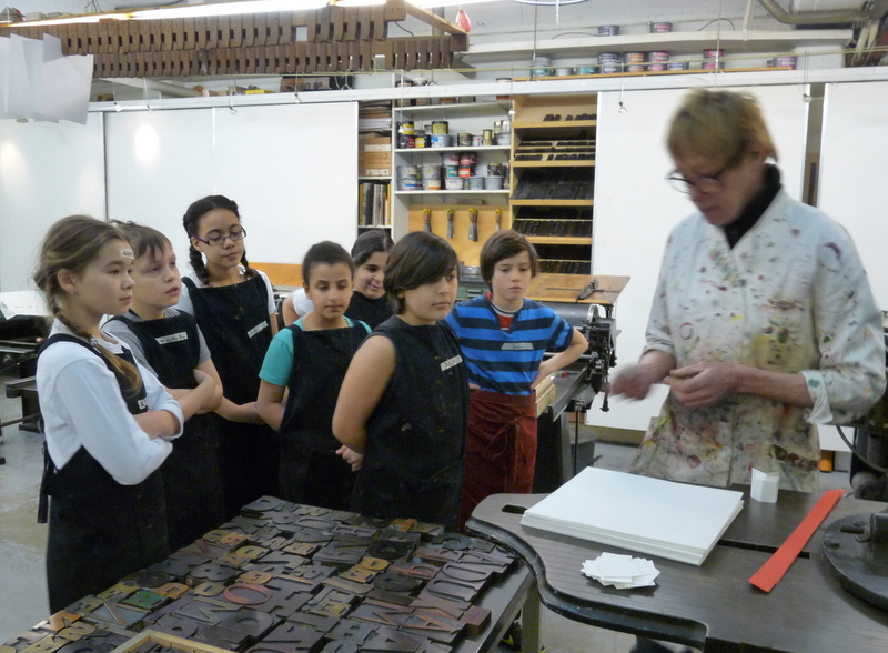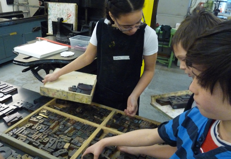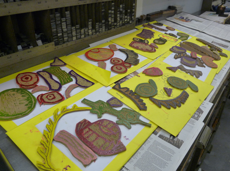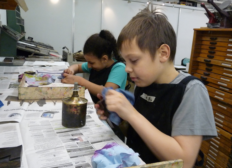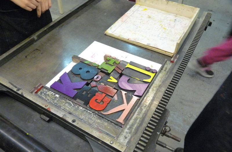 De kinderen van groep 7a waren vanmorgen vroeg uit de veren. Om 8.15 uur waren ze gewapend met monden, ogen, neuzen, haren en oren al op weg naar het Grafisch Werkcentrum. Ze werden hartelijk ontvangen door Carola en Erica en hebben een geweldige ochtend gehad. Terwijl de ene groep in de weer ging met de koppen, was de andere groep aan het toveren met prachtige letters. De resultaten zijn fantastisch. Echte vakvrouwen hoor, die Carola en Erica!! We hadden best nog een paar uur willen blijven, maar ja…..Bedankt voor de fijne, leerzame en ambachtelijke ochtend!
