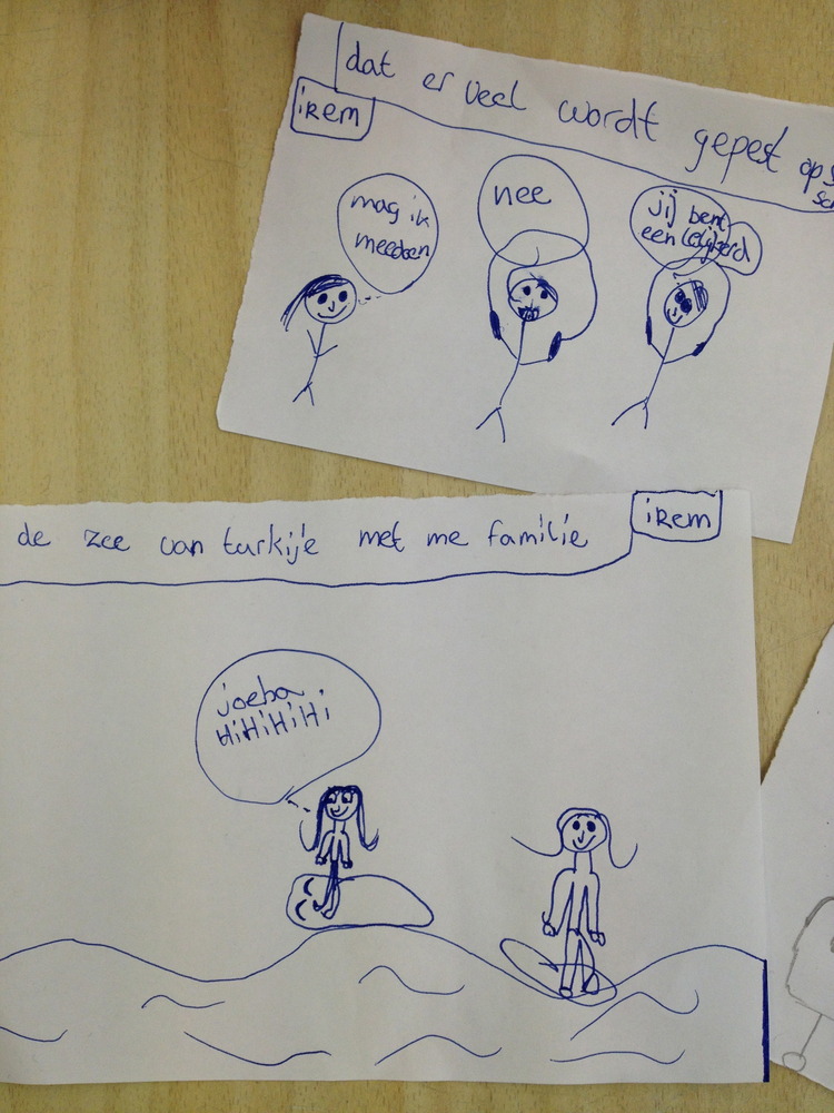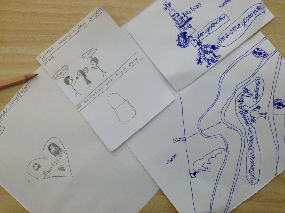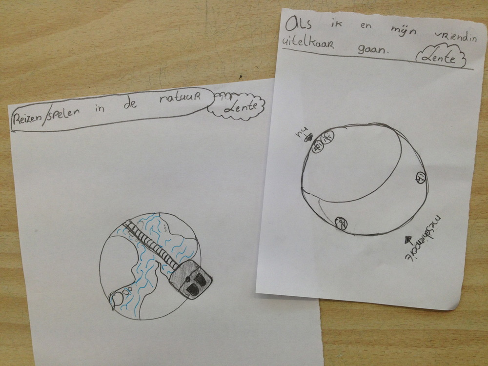 Woordenlijstjes en tekeningen maken ter voorbereiding op hun eigen mooie zinnen! Het was een leuke les, meester Frans!