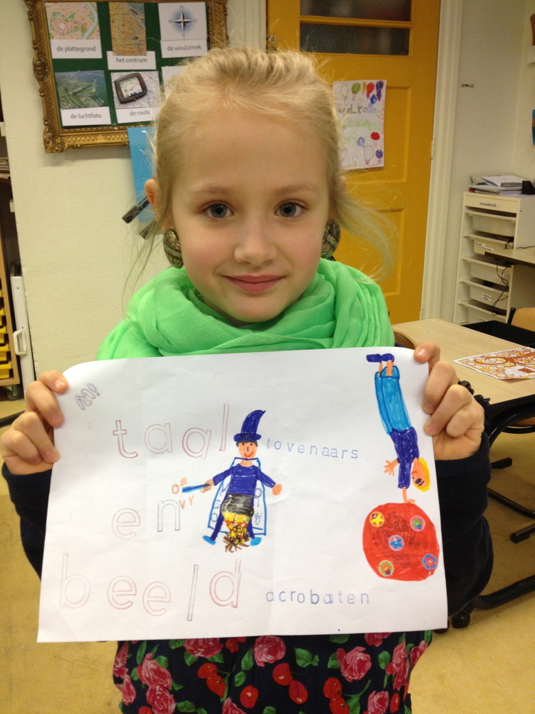 Safien uit groep 5B maakte thuis al deze prachtige Taaltovenaars & Beeldacrobatenposter! Daar zijn we heel blij mee, Safien!