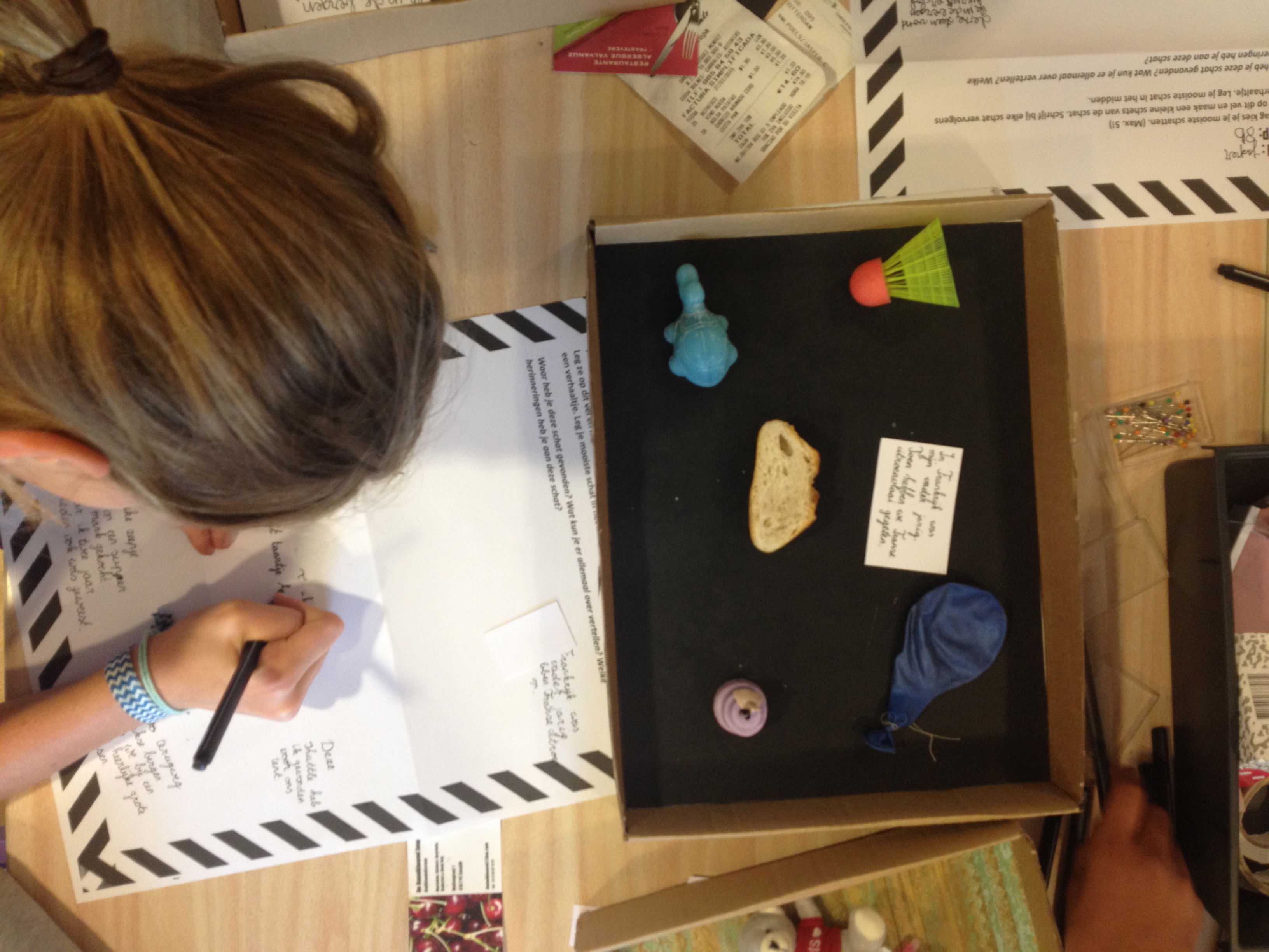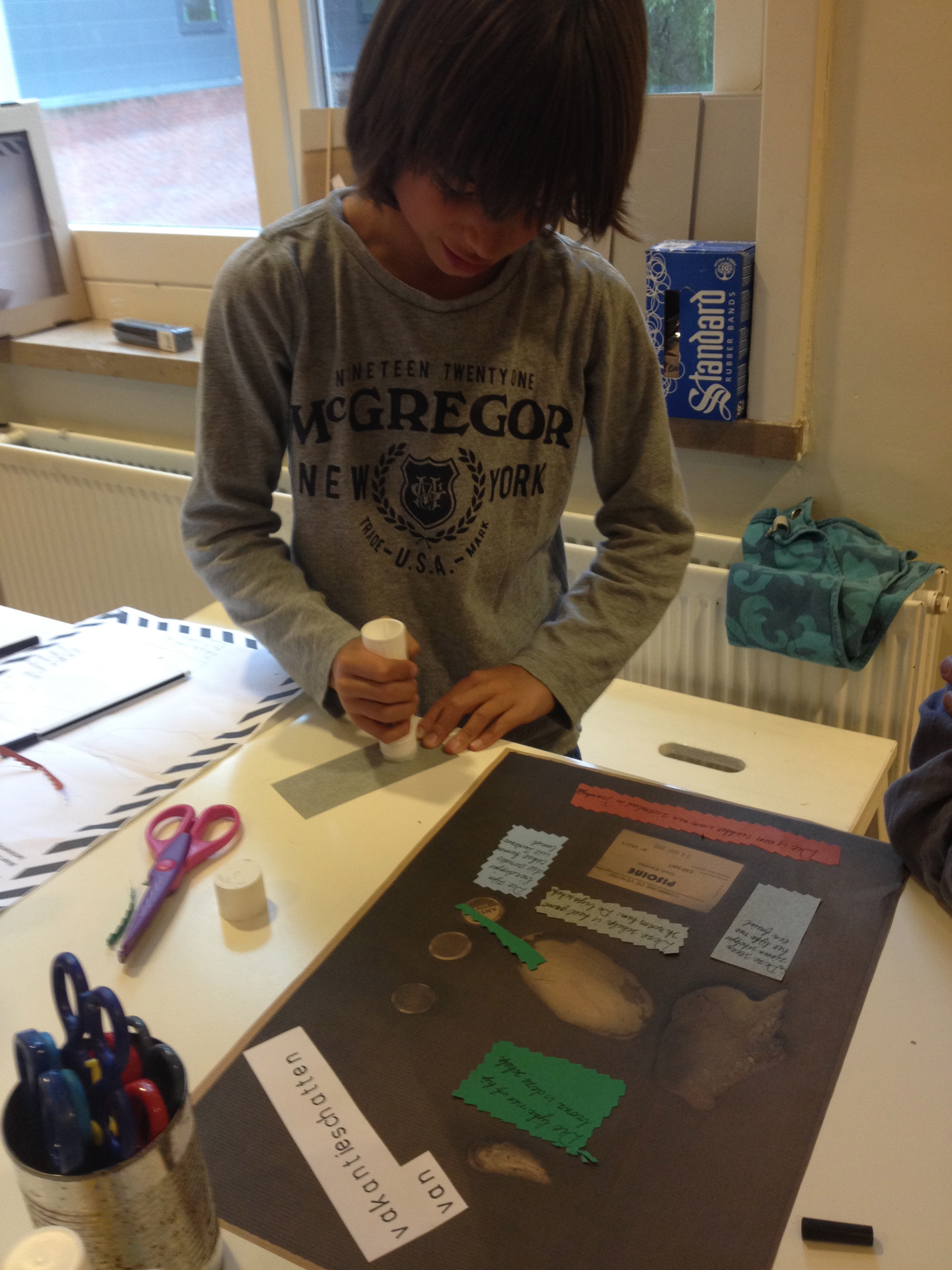 Vanochtend waren beide groepen 8 aan de beurt om hun museumstukken in hun mini-vitrines te plaatsen en te voorzien van hun tekstjes. Een leuk behangetje erin, mooie met fijne met dunschrijvers beschreven kaartjes met persoonlijke verhaaltjes en hun selectie van hun schatten….juf en meester werden er al heel blij van!