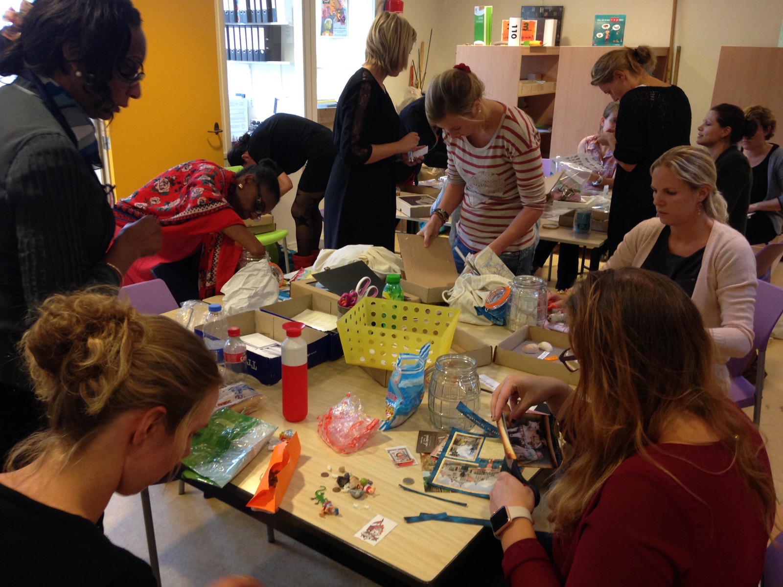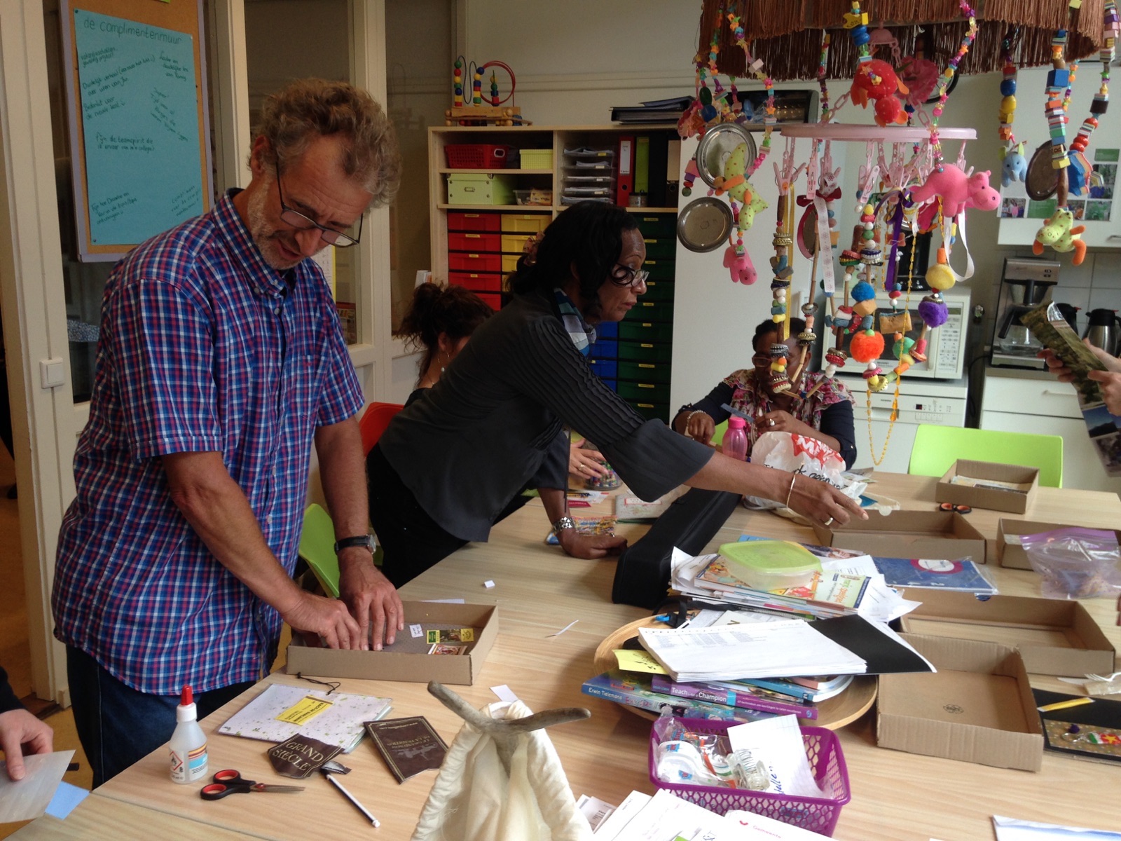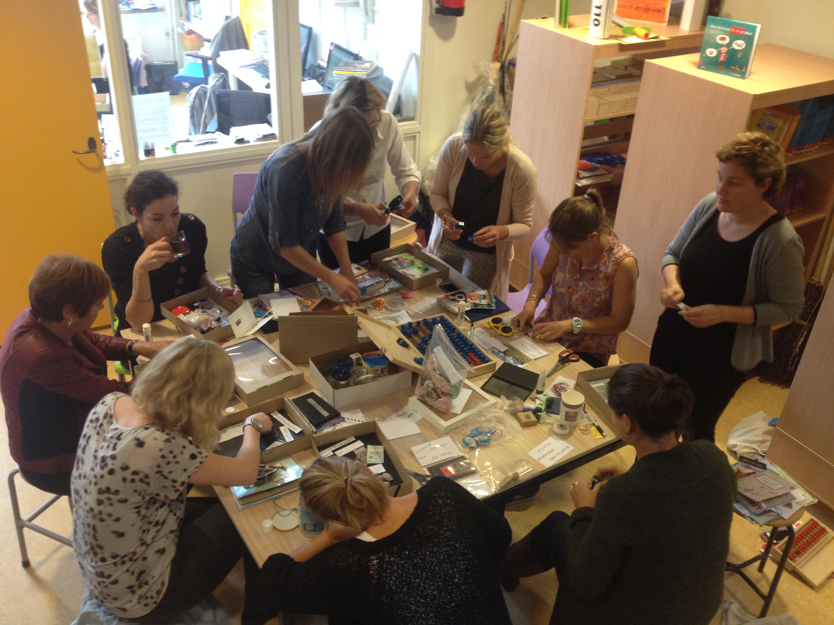 Ooh….wat kunnen onze St.Jan juffen en meesters verzamelen! Vanmiddag, ter afsluiting van de studiedag, werd er hard gewerkt aan hun museumstuk voor op de expositie aanstaande vrijdag. Mooie vitrinekastjes, potten en hoesjes werden gevuld met alle verzamelde spulletjes. Ons museum zal tot de nok toe gevuld zijn!