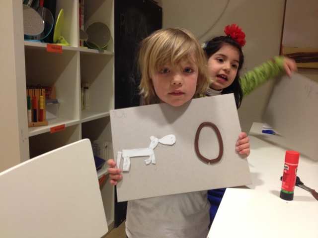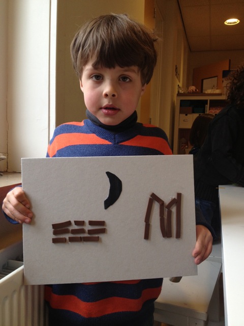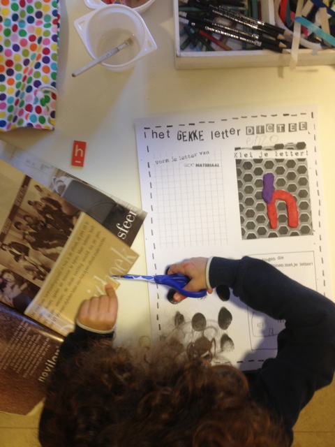 Vandaag gingen de groepen 1/2 A, 1/2B en 1/2D met juf Nathalie en juf Baukje aan de slag met het maken van een stempel. En wel een heel bijzondere! Op een grote kartonnen onderplaat plakten ze hun zelf ontworpen letter en bijpassende afbeelding. Dat was nog niet zo eenvoudig, want de letters moesten natuuurlijk in spiegelbeeld. Het raam in de kleutergang bleek daarbij een handig hulpmiddel! Volgende week gaat ieder zijn stempelplaat afdrukken in een van de oude waswringers die we voor het project hebben aangeschaft. We kunnen niet wachten!