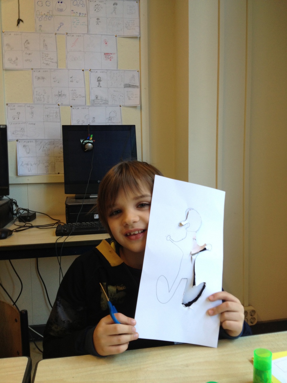Groep 5A ging vandaag een sjabloon knippen voor hun eindwerk. Daarvoor moest eerst goed het elfje gelezen worden van vorige week. Welk element uit het elfje is het meest geschikt om als beeld te laten zien? Er werd flink getekend en vervolgens geknipt! Ook bekeken we 2 super leuke filmpjes op youtube over de techniek die we volgende week in ons “pop-up” atelier gaan uitvoeren. We hebben er zin in! (En we verklappen nog even lekker niet wat we gaan doen!)